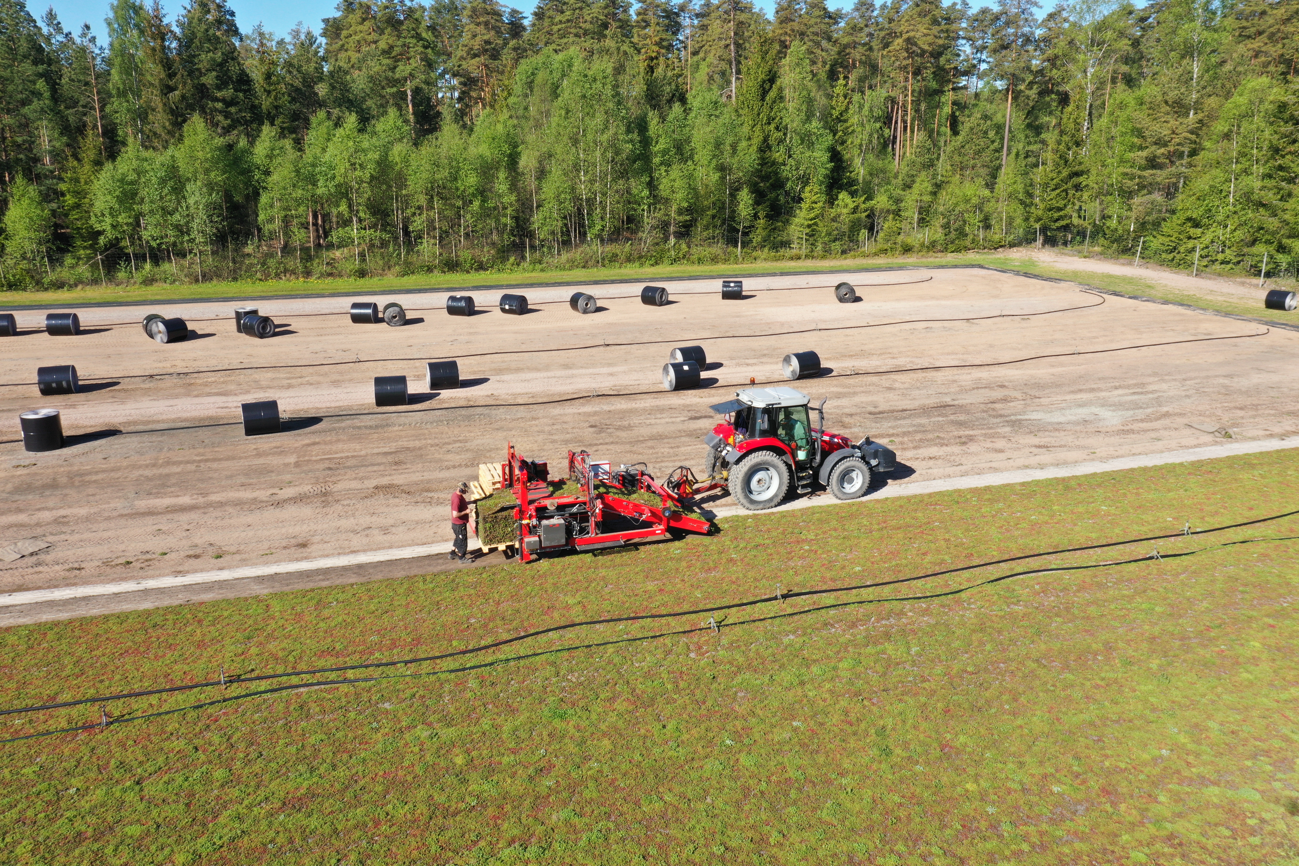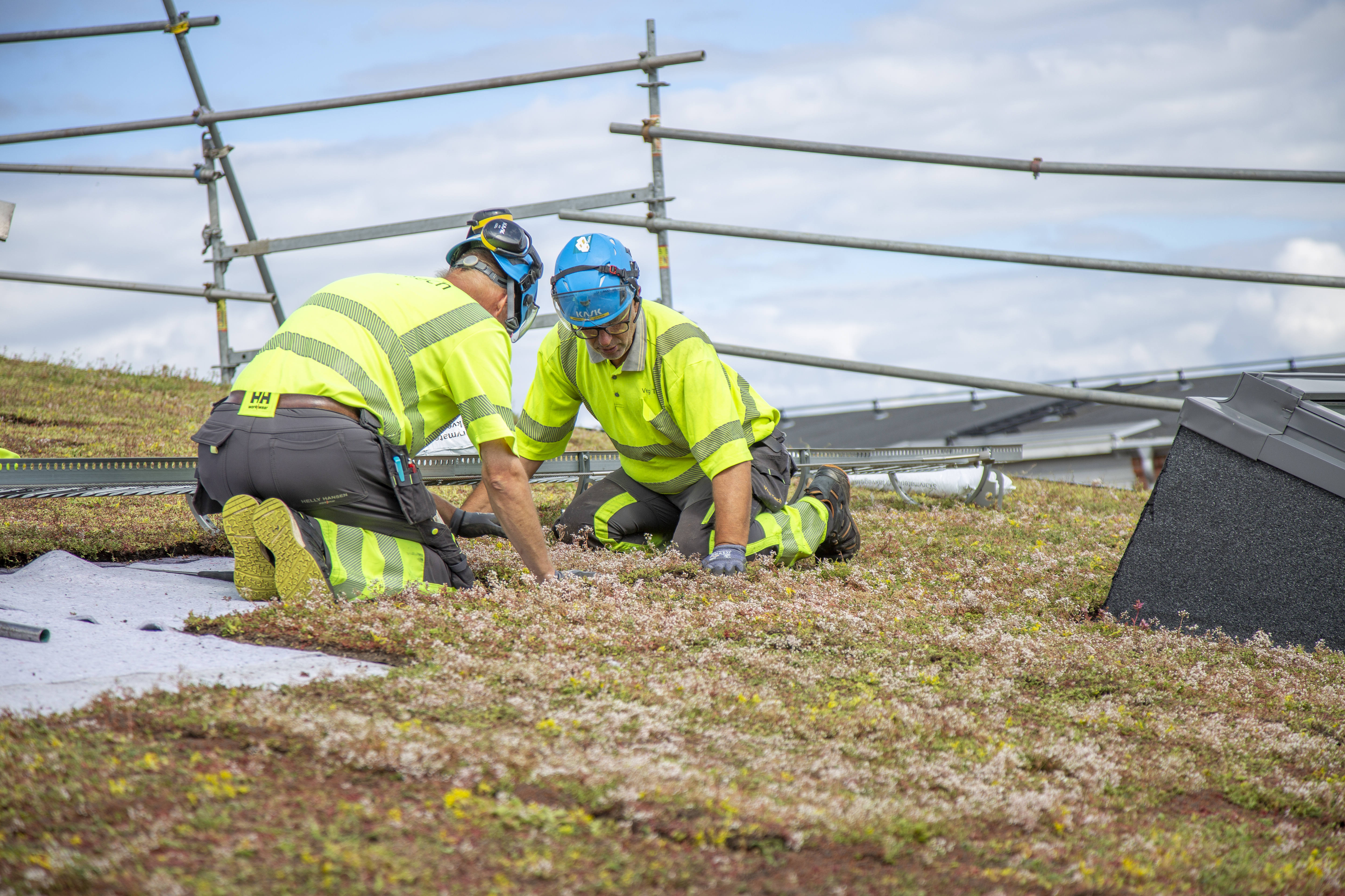 "Sedum är ett levande material och kan därför aldrig förvaras på någon lagerhylla. Så fort vi tar upp det från marken levereras det direkt via lastbil till det aktuella taket där det genast läggs på takytan. Det ställer stora krav på vår logistik."