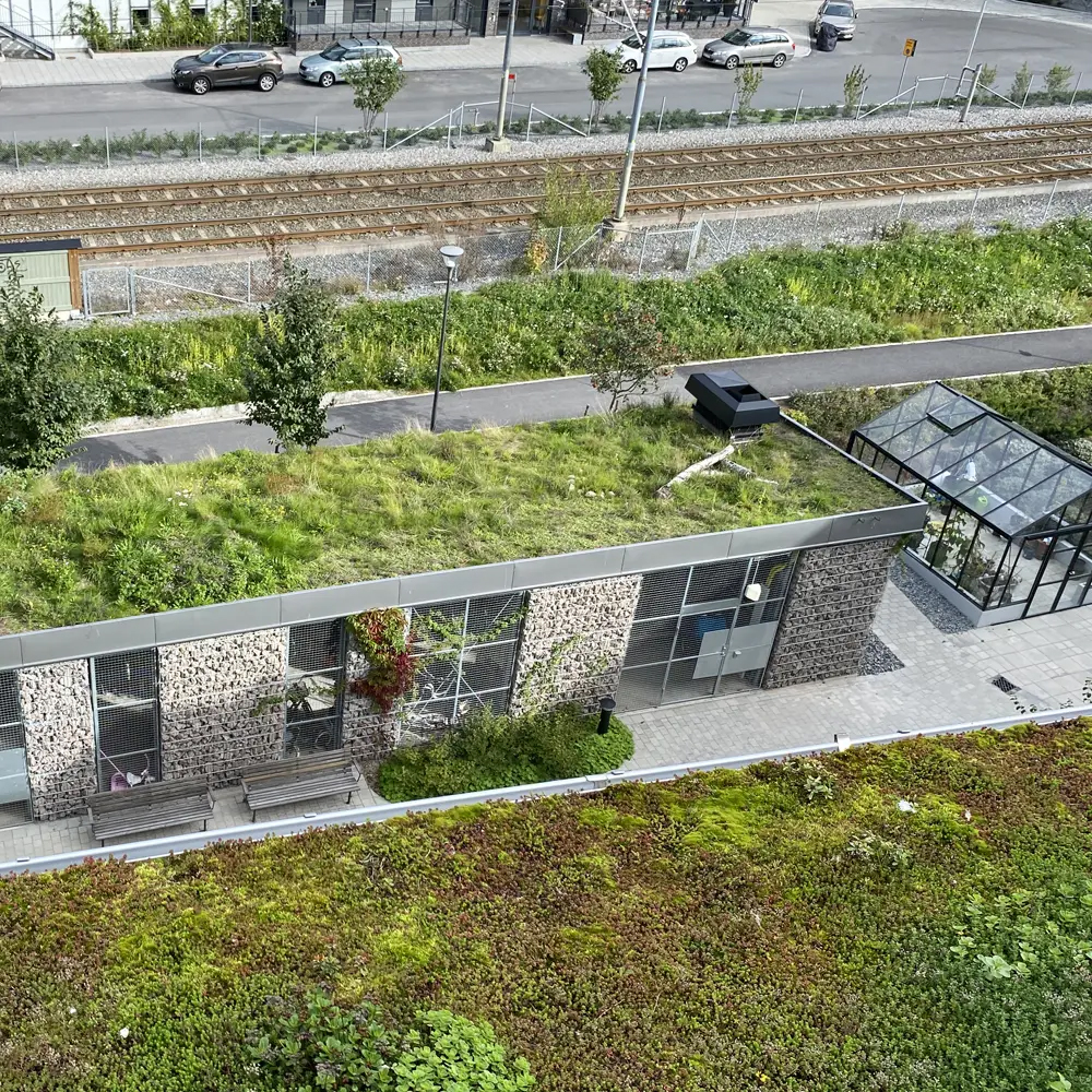 - Jag skulle säga att det viktigaste är att de ger ett trevligt utseende. Och växtligheten på taket håller dessutom kvar regnvatten och reducerar den omedelbara belastningen på dagvattensystemet vid häftiga skyfall, som beräknas bli allt vanligare framöver.